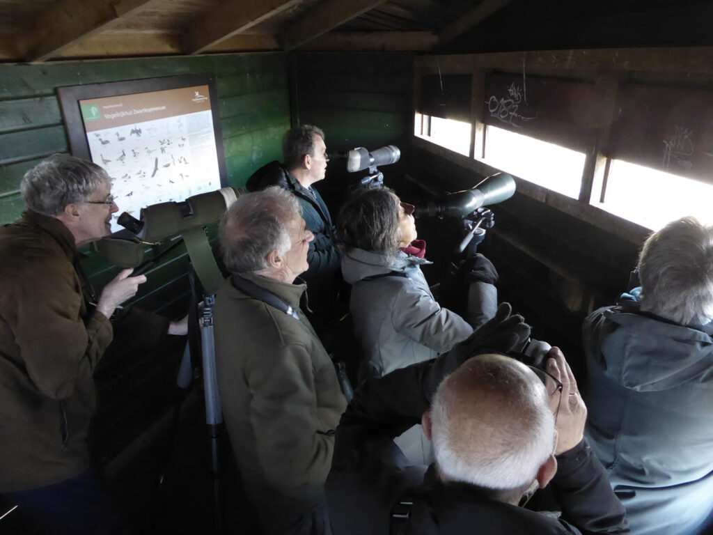 Met dertien vogelaars reden wij naar het parkeerterreintje bij dit natuurgebied. Veel details over de vogels zal ik hier niet geven. Een lijst van vogels staat wel in het officiële verslag van de Werkgroep. Zo interessant is zo’n lijst ook weer niet. In zo’n gebied kan je verwachten dat de lijst met Aalscholver begint en, als je geluk hebt, eindigt die niet met Zwarte kraai maar met Zwartkopmeeuw. We hadden geluk.