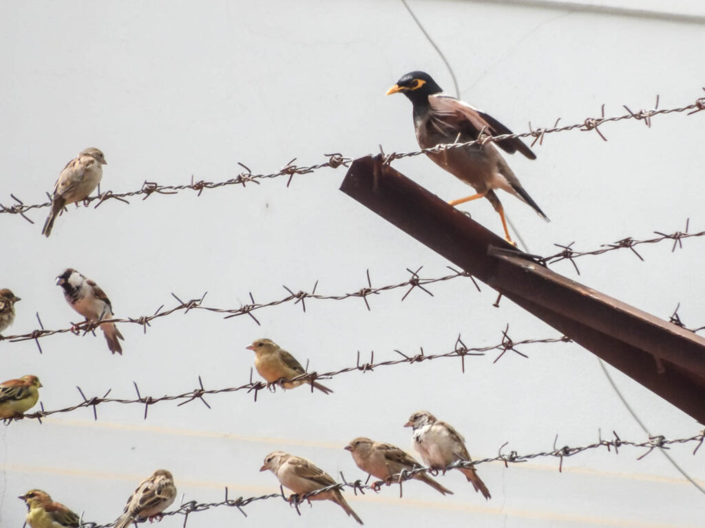 We zagen bij de Boeddhistische tempels en bij andere parkjes in Luang Prabang een paar mooie vlinders (zoals de common tiger butterfly, Danuaus genutia) maar verder geen enkele vogel van betekenis. Wij moesten het doen met de overal in Zuidoost Azië algemene treurmaina (‘common myna’), een spreeuwachtige en met honderden mussen, die hier geen huismussen maar ringmussen bleken te zijn.