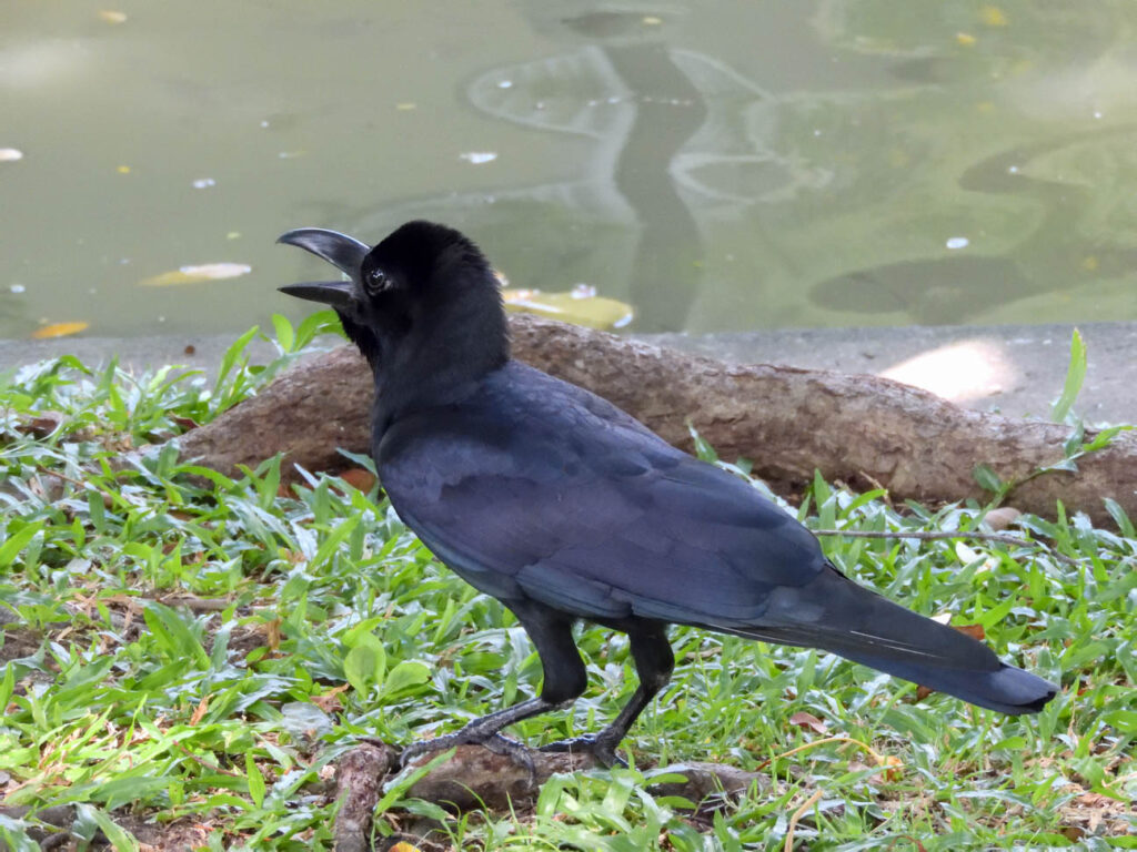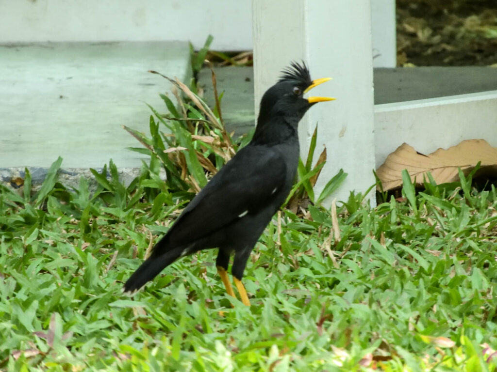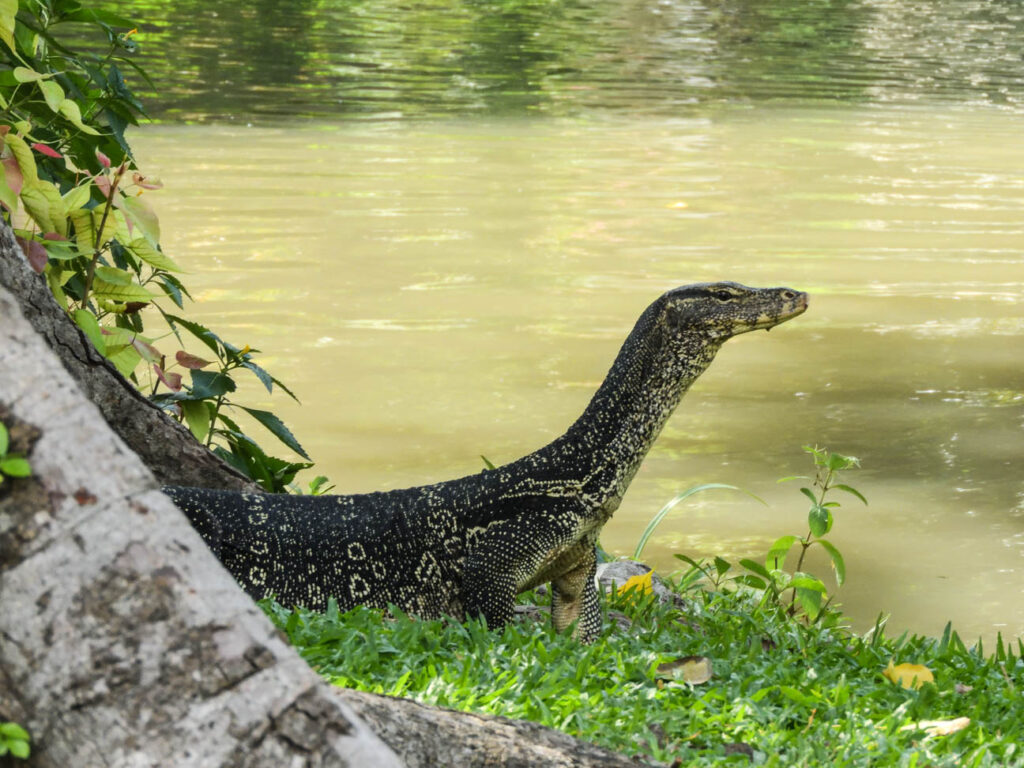 Op de terugweg naar Nederland waren we nog even in Bangkok. Daar nog een paar interessante waarnemingen in de stadsnatuur, een parkje vlakbij de grote Wat Pho tempel: Saranrom Park. In het park zagen we twee grote Varanen (‘monitor lizzards’) , de een na grootste hagedissen ter wereld. Ik had ze 22 jaar geleden in Malakka in Maleisië gezien en was vergeten hoe groot die beesten zijn. In het parkje zagen we ook zwarte kraaien (dikbekkraaien), een iets andere soort dan we in Nederland zien en ook maina’s, in dit geval de kuifmaina (‘crested myna’), een andere soort dan die we in Laos hadden gezien.