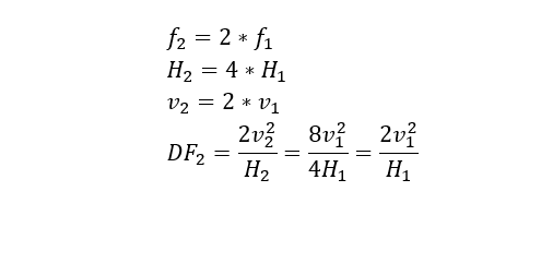 Stel dat ik hetzelfde object met een twee keer zo lange brandpuntsafstand van twee keer zo ver fotografeer, dan verandert de scherptediepte vrijwel niet. Op basis van de vereenvoudigde formule voor DF blijft die gelijk. De hyperfocale afstand H wordt vier keer zo groot. Brandpuntsafstand en afstand tot het object worden verdubbeld.