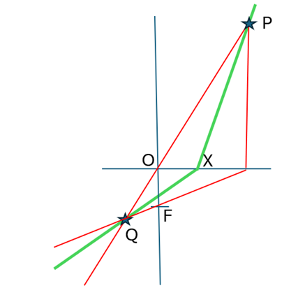 Om elke andere straal te kunnen berekenen, kunnen we met deze regels voor één punt op de straal het beeldpunt achter de lens berekenen. De straal vanaf het raakpunt van deze straal op de lens X naar het beeldpunt Q is de uitgaande straal, zie onderstaand figuur.