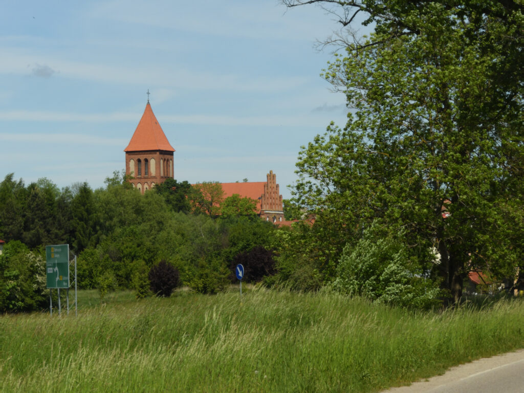 Ik fiets hier door het voormalige Oost Pruisen. Veel plaatsnamen zullen wel Duits geweest zijn, maar na de Tweede Wereldoorlogen zijn de Duitsers hier verjaagd en zijn er Polen komen wonen, gedeeltelijk afkomstig van het deel van Polen dat de Russen hebben ingepikt. De bakstenen gebouwen doen erg Noord-Duits aan. Als ik een uur later door mooie weidegebieden fiets, zie ik een aantal kraanvogels in het veld. Wat zijn ze groot! Ze zijn groter dan ooievaars. Tijdens elke fietstocht in Polen heb ik er wel een paar gezien.